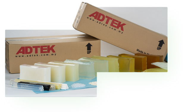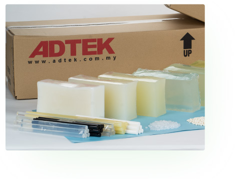 manufactures a wide range of EVA, Polyolefin, and pressure sensitive hot melt adhesives for various types of applications. Some of these applications include: manual and automatic carton sealing, book binding, plywood composing, automotive parts assembly, diaper and sanitary napkin manufacturing, material lamination, paper and textiles manufacturing, air filter, =furniture manufacturing and woodworking, handicrafts, and many more.